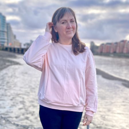 I jumped all over the extremely cheap clearance blush Loopback jersey (French terry) and interlock jersey from New Craft House when I saw it marked down – £4.80/m and £3.60/m respectively! These are a beautiful pale peachy pink colour and are perfectly matching, so I knew they’d be perfect for sewing another comfy sweatshirt.