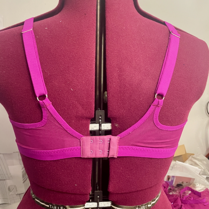 I wanted to be able to tell this bra apart from my other fuchsia Wren bra in my underwear drawer so I added a label under the hook and wrote “36 C/D” on the back.