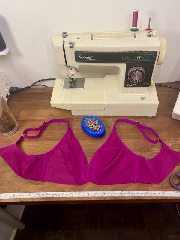 Happily, I had been gifted one of the original NCH fuchsia mesh kits by Emma Crafty Clyde from her stash after her mastectomy, so I’m very appreciative that I can sew this again with all the matching mesh and elastic!