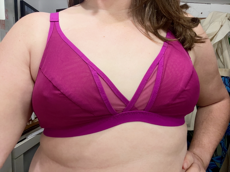 Back then, I sewed a size 34A/B since I’m a very standard 34B when at my usual weight. But the cups were always a smidge too small (hello sideboob), so this time I not only increased the band for my added Long Covid weight, but increased the cups, too, sewing a 36C/D. I’ve never been close to a D in my life, but it seemed logical to move up since the A/Bs were too small…