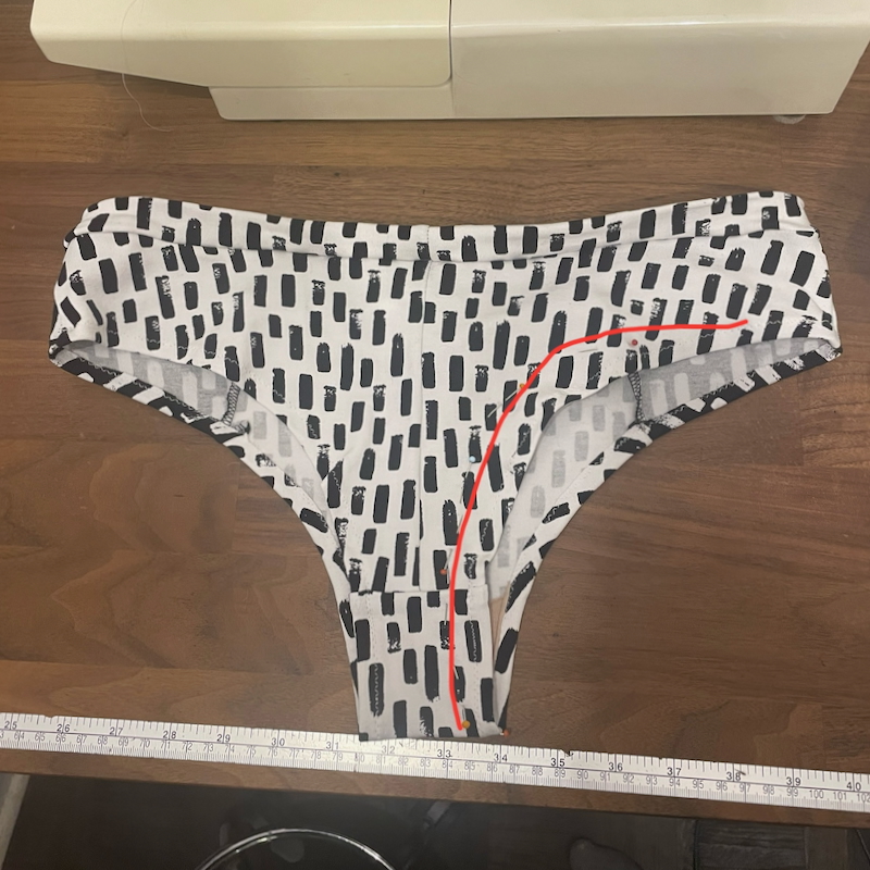 My final change was purely for personal preference, but I prefer my underwear to sit under my gut in the front rather than midway up, so after wearing my test pair for a bit, I lowered the CF by 3.5cm, tapering to 1cm lower at the side seams, then to no change at the CB.